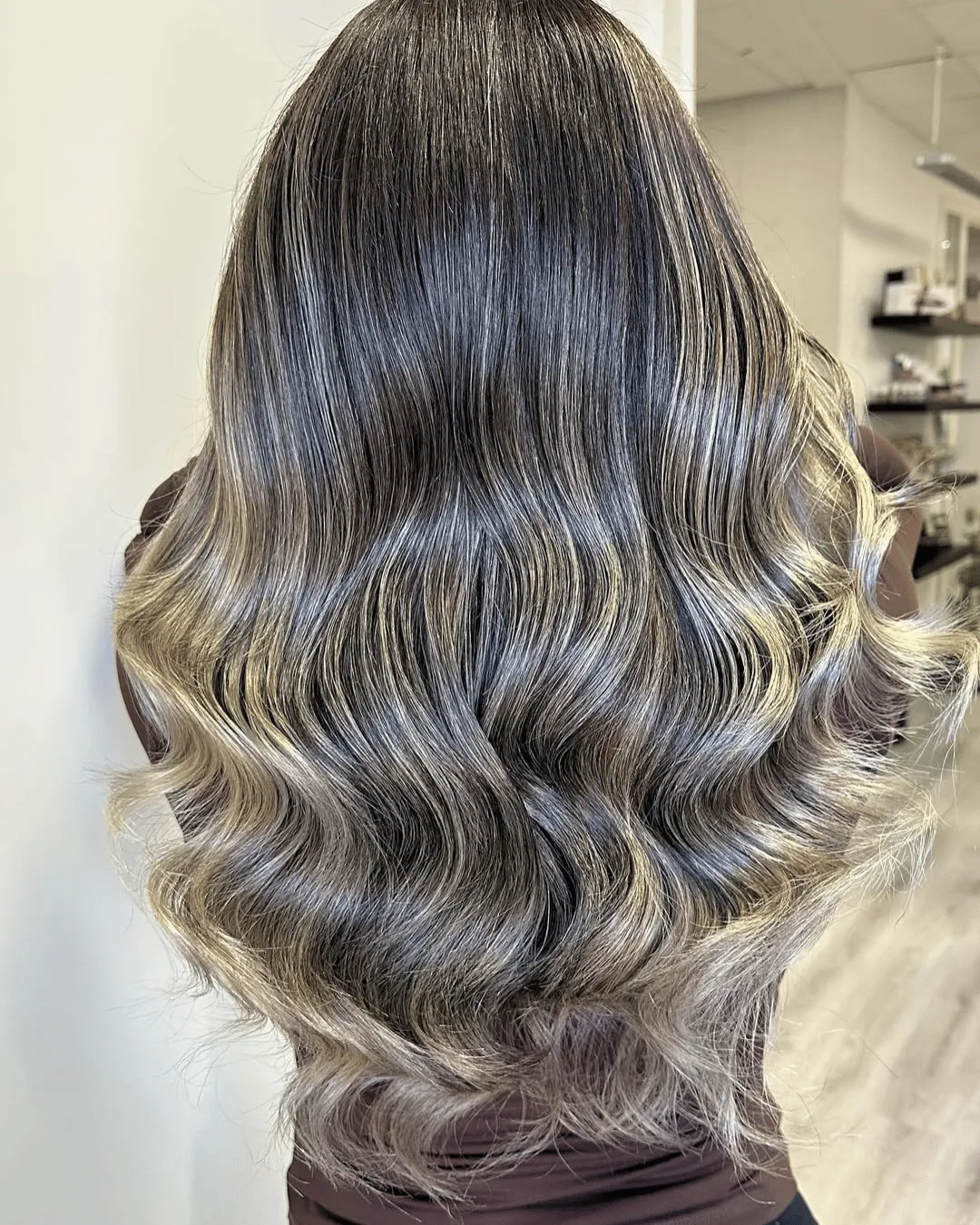 Därefter följer folieslingor, där vi applicerar slingorna för att skapa dimension och lyster i ditt hår. Vi arbetar med precision för att ge dig ett naturligt och strålande resultat.